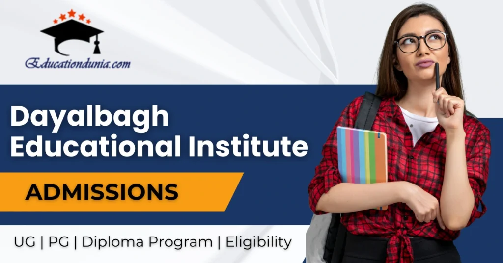 DEI admission for the diploma program will begin soon for the academic year 2026. At present, the university offers PG Diploma in Textile Designing & Printing (PGDTDP), PG Diploma in Journalism & Mass Communication (PGDJMC), PG Diploma in Business Economics (PGDBE), PG Diploma in Urban Planning and Management (PGDUPM) (Modular), PG Diploma in Artificial Intelligence (PGDAI), Diploma in Elementary Education (After Intermediate Pass) and more.
